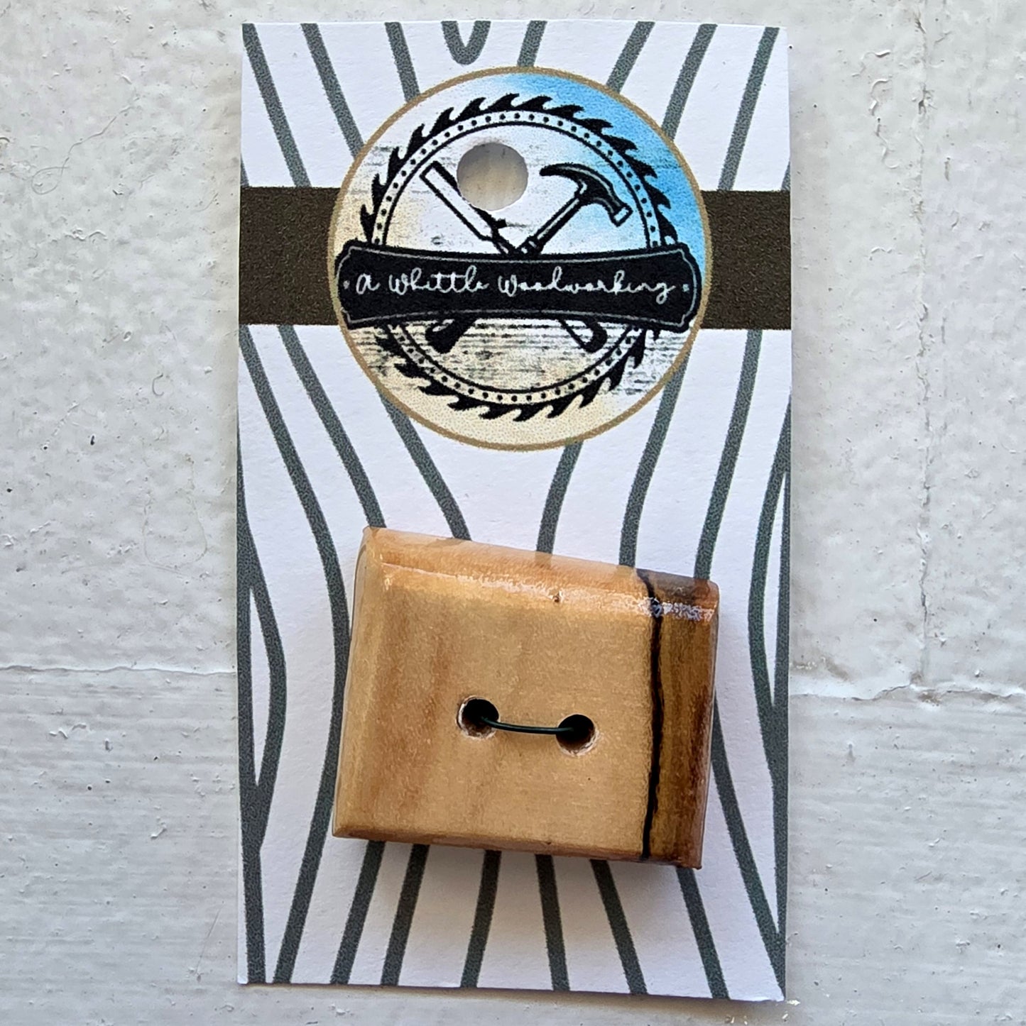 1 wood button, roughly 1 1/8 inch imperfect rectangle, 1/4 inch thick.