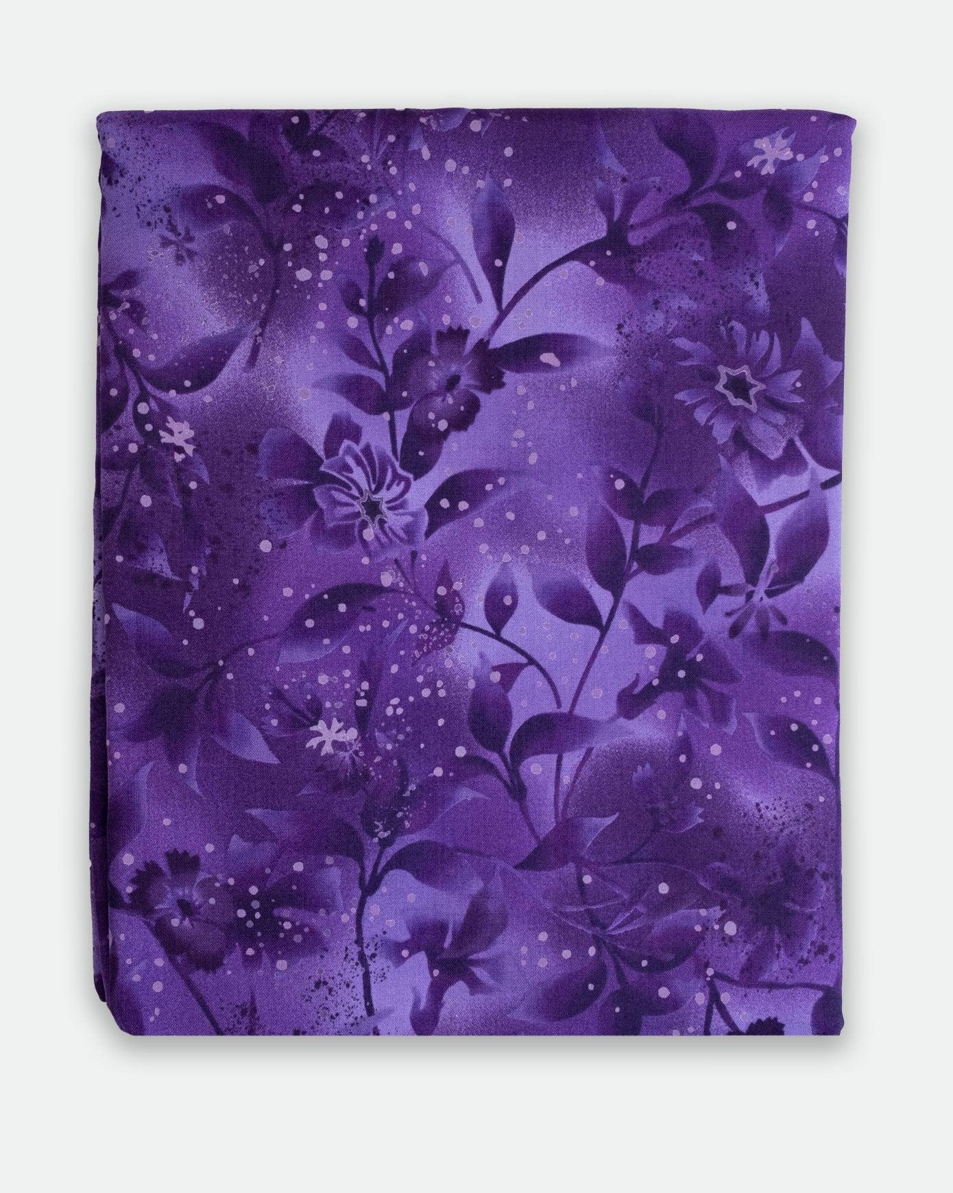 Introducing the Botanicals Amethyst quilting fabric: a luxurious 100% cotton fabric from the Boundless fabric collection. Its tonal blend features a dark purple floral pattern on a backdrop of varied purple shades. Perfect for any quilting project!