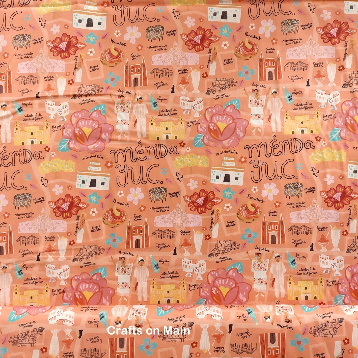 BOLT END 1/3 YARD Viva Mexico Map Peach 120-1270