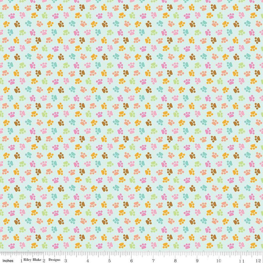 Pretty Kitty Paws on Blue By Riley Blake