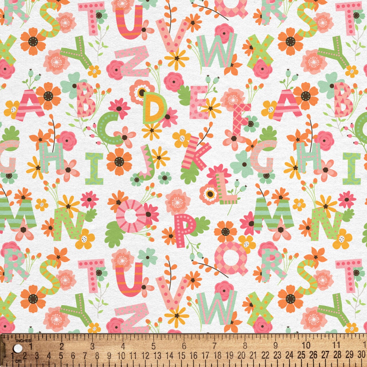 Regular price $8.99Flannel: Flowers and Alphabets on White - 100% Cotton