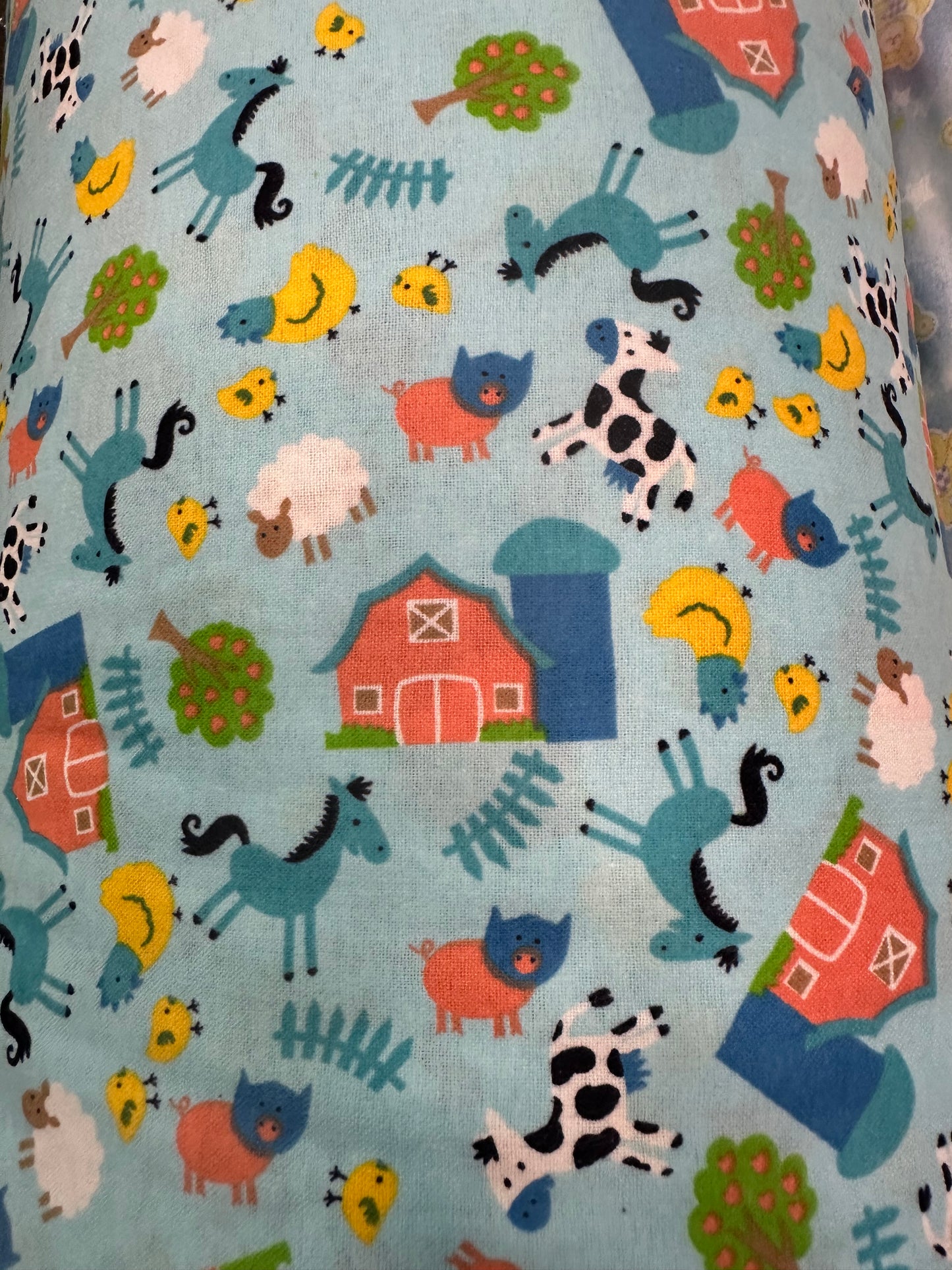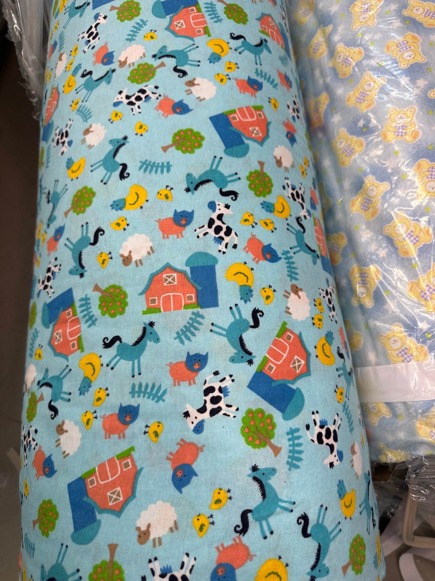 $35 Flannel Flat Fold: 5 Yards of Farm on Blue 44 inch 100% Cotton