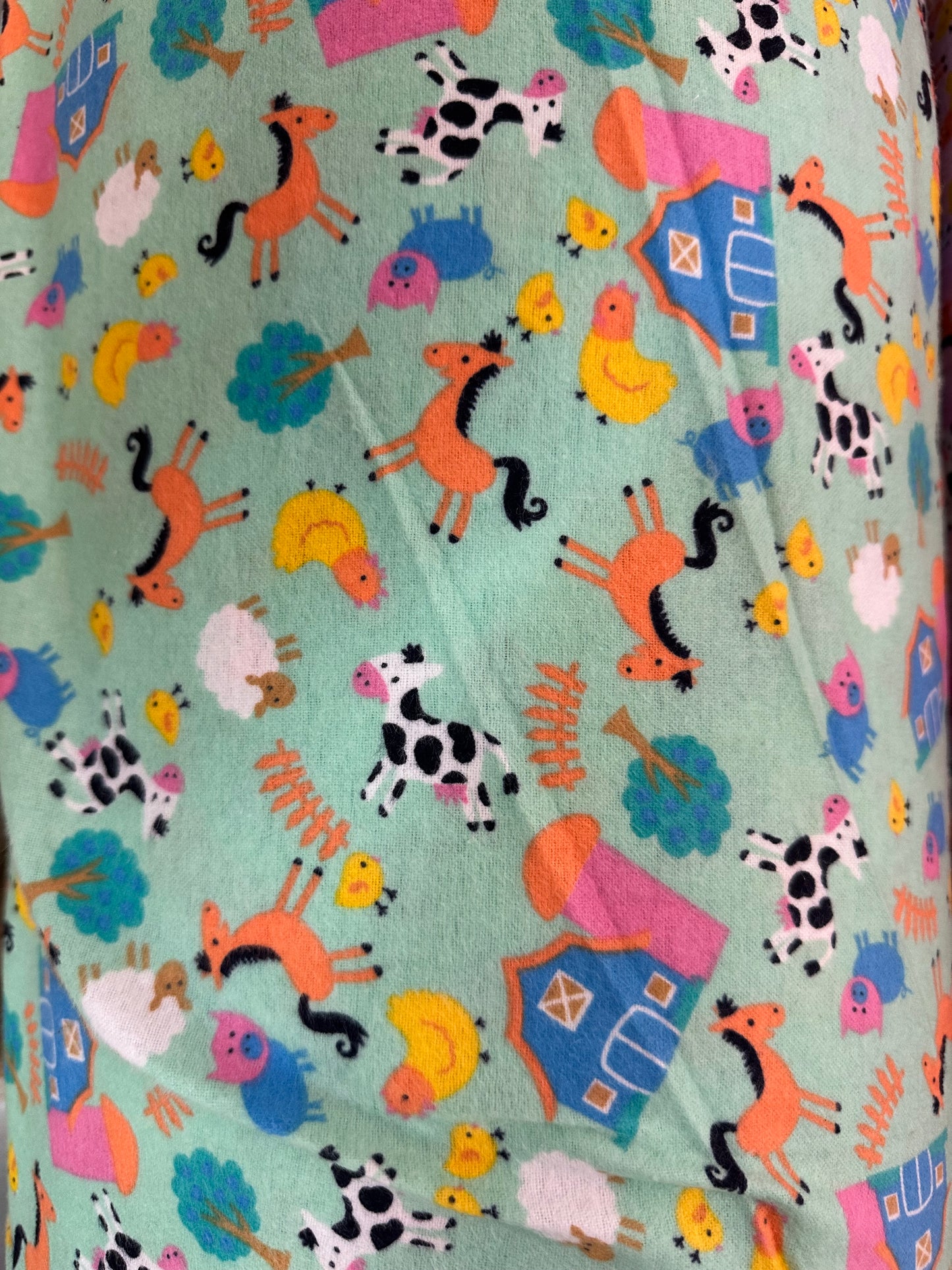 $35 Flannel Flat Fold: 5 Yards of Farm on Pale Green 44 inch 100% Cotton