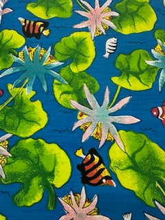 Dive into creativity with our Fish and Lilypads Print Poly-Cotton Blend—7 full yards at 60″ wide. Featuring an enchanting under the sea print this versatile fabric perfectly balances charm and durability. Whether you're quilting, sewing garments, or decorating home accents, this sturdy blend offers endless possibilities.