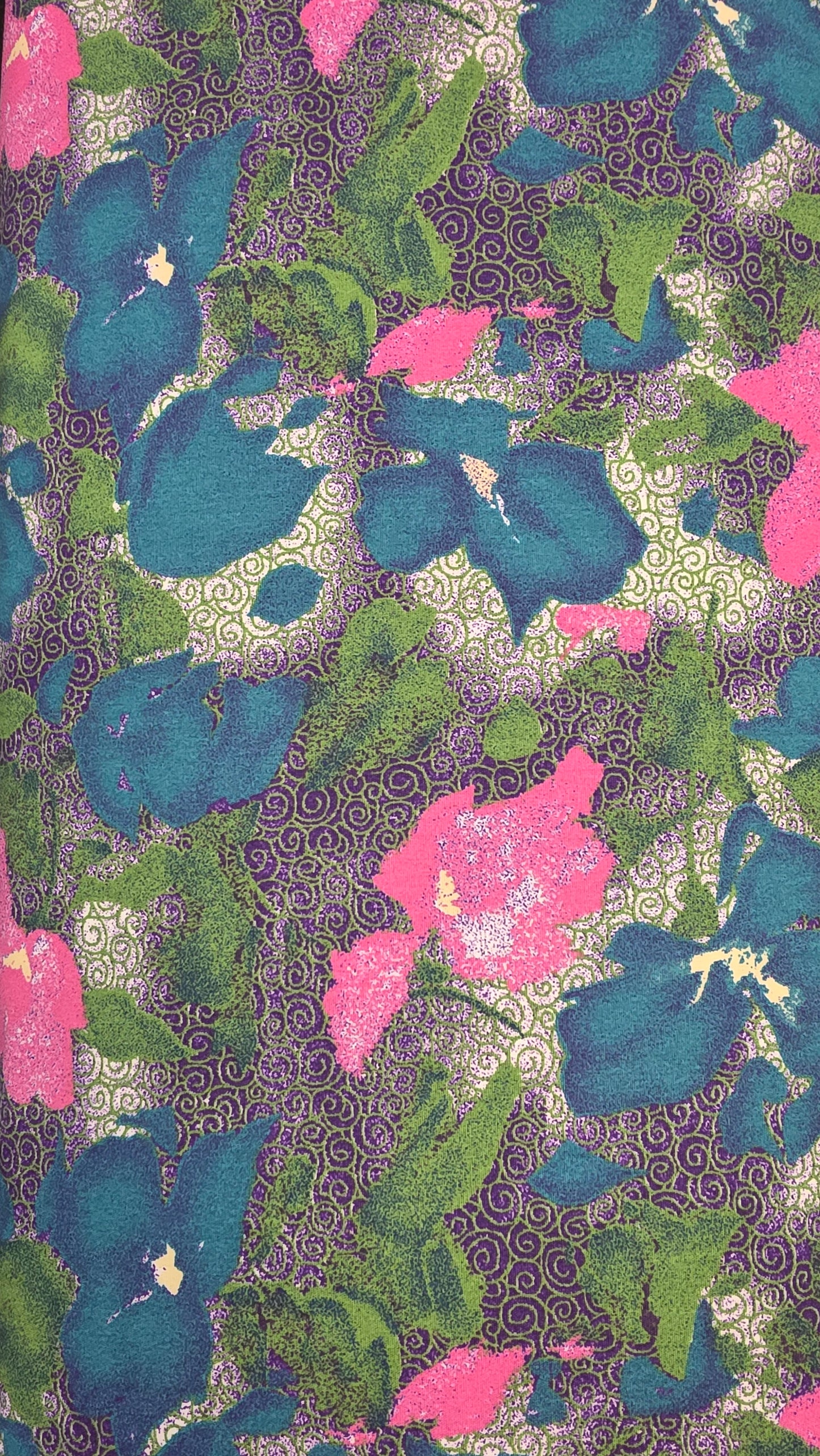 $25 - Whole 7 Yard - 60 inch Poly Cotton Blend - Pink and Blue Flowers