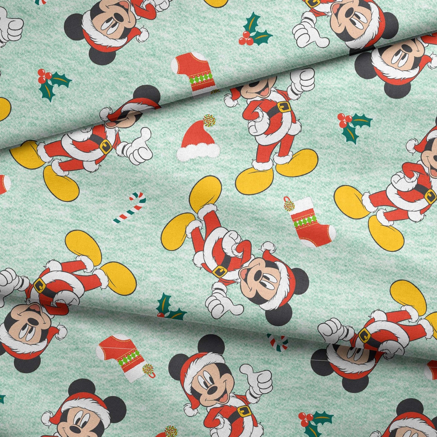 Bring the joy of the holidays to your sewing projects with this delightful Mickey Mouse Holiday Santa Toss fabric from Springs Creative. Featuring Mickey Mouse dressed as Santa Claus, playfully scattered across a festive background adorned with stockings, candy canes, holly, and Santa hats, this 5-yard flat fold is perfect for adding a touch of Disney magic to your creations.