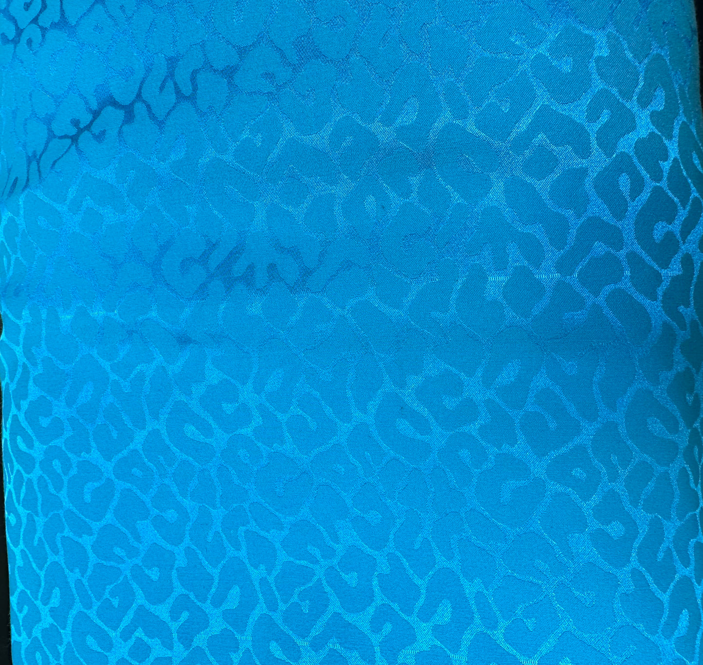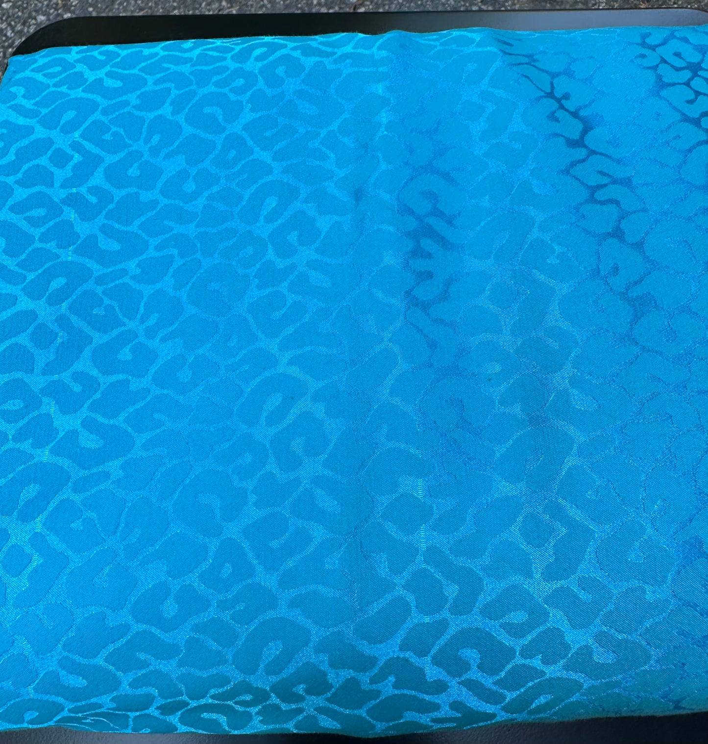 Elevate your next project with this eye-catching jacquard cotton-poly blend fabric featuring a bold blue animal spots motif. With a full 5-yard cut, this versatile textile offers both style and substance — perfect for apparel, décor, accessories, and more.