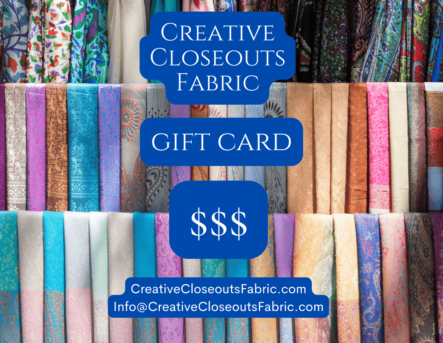Looking for the perfect gift for a fabric lover? Our Digital Gift Card is the perfect choice! Whether they're passionate about sewing, quilting, or crafting, this gift card lets them choose exactly what they need from our wide selection of premium fabrics, tools, and accessories.
