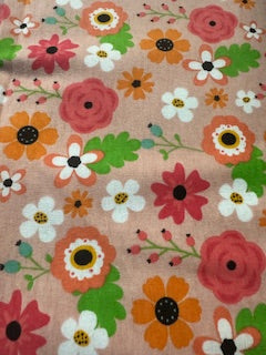 Flannel: Spring Flowers on Pink - 100% Cotton