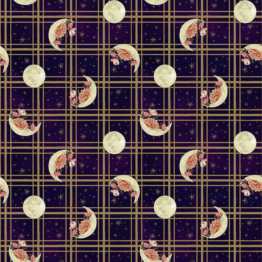 Midnight Rendezvous Dark Purple Moons with Flowers on Plaid