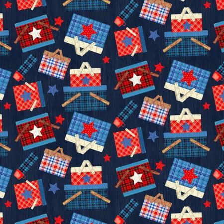 Navy Tossed Picnic Baskets 100% Cotton, 44/45in