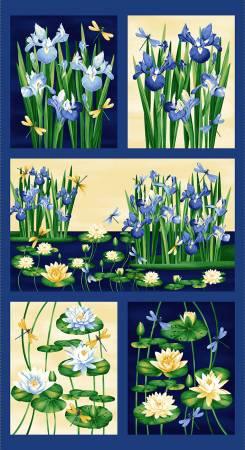 P088 Indigo Waterlily Magic Blocks Panel 24in