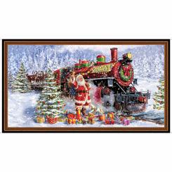 p091 Santa's Night Out SANTA & TRAIN PANEL MULTI