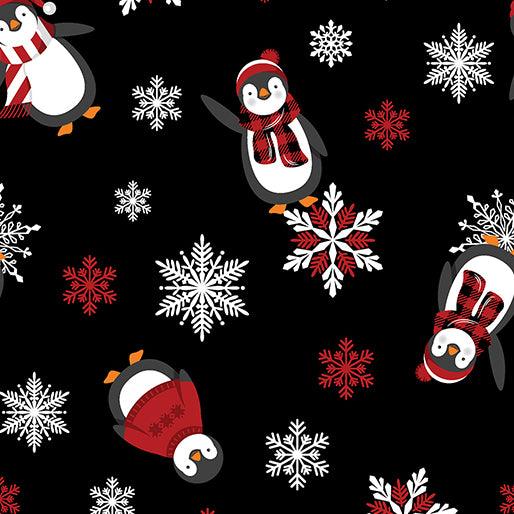 Playful Penguins Flannel Black Winter Comfort Flannel