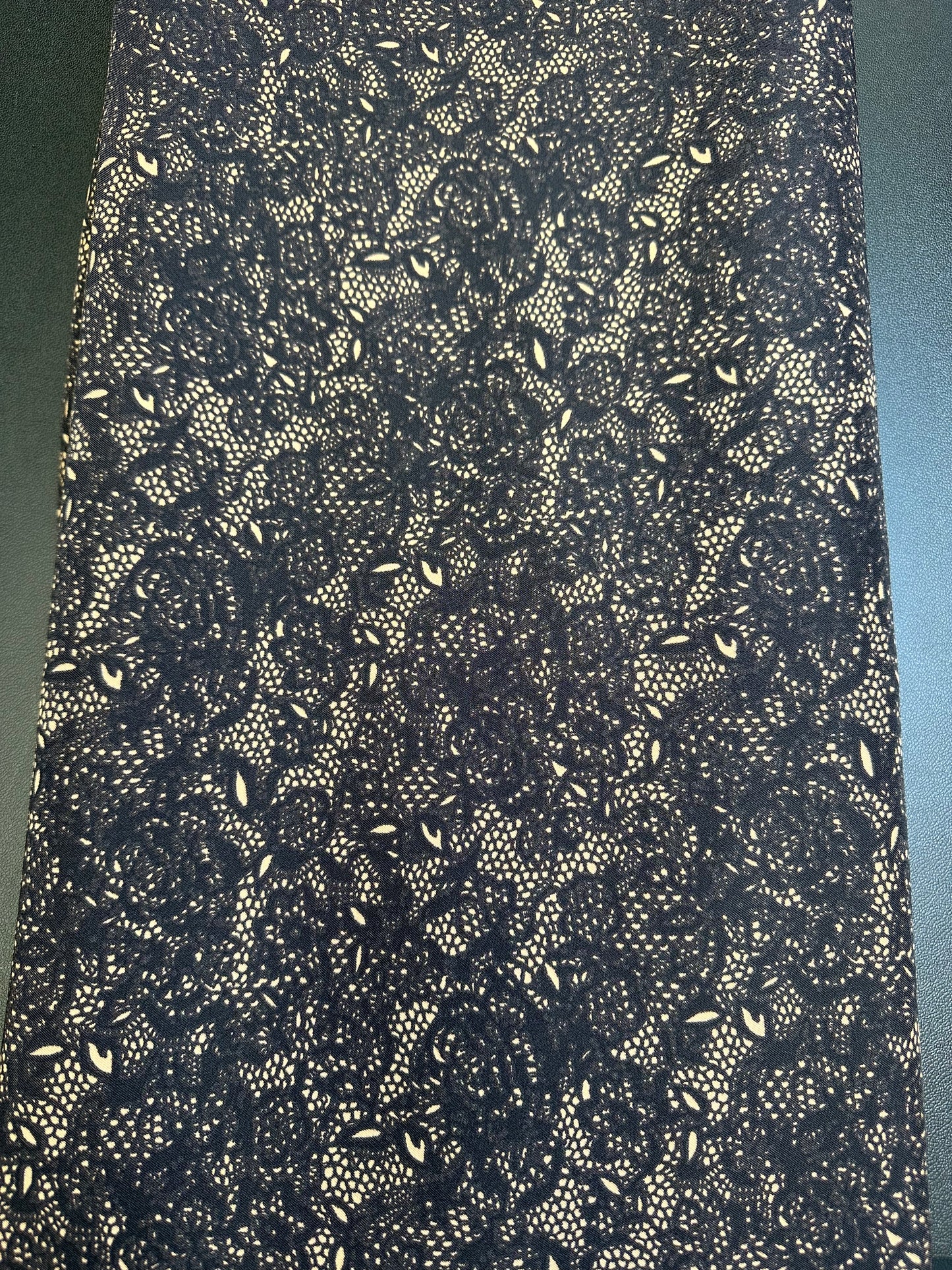 $29.99 For 5 Yards - Poly Twill - Black "lace" design on Brown background