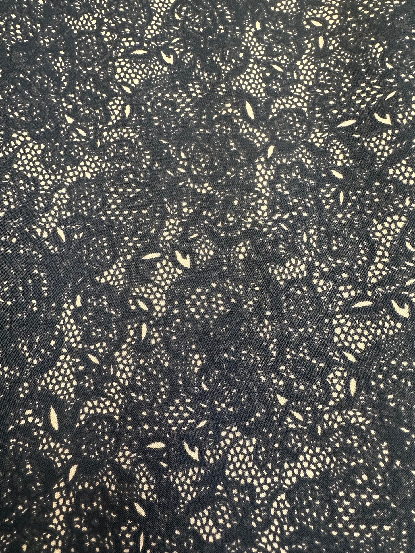 $30 Whole 5 Yard Cut - Poly Twill - Black "lace" design on Brown background