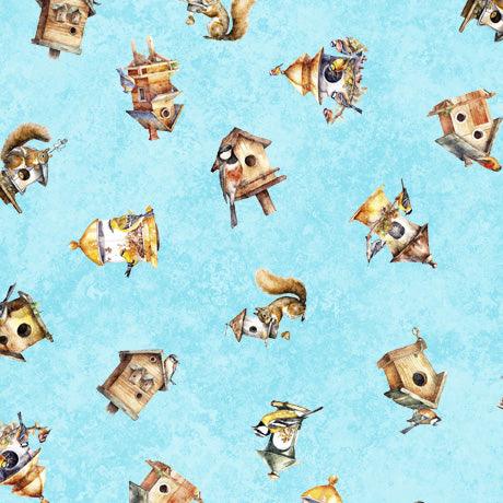 QT Fabrics Birdsong 2600-30282-Q Birdhouse Toss Aqua