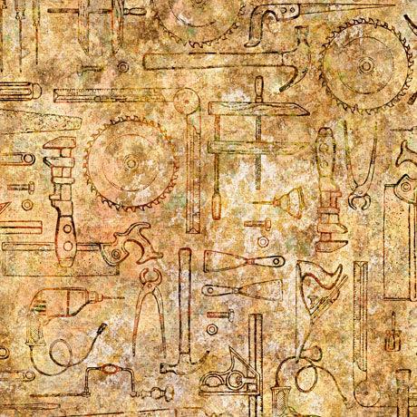 QT Fabrics Measure Twice 1649- 29555-A Linear Tools Brown