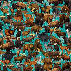 Lodge animals are rendered in painterly design and rich color in picture patches, allovers, and decorative stripes. The extra-large mountain landscape panels and textural coordinates can star on their own or come together for projects that all nature and animal enthusiasts will cherish. ©Dan Morris