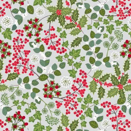 Winter Botanical Holly and ivy on light silver with pearl
