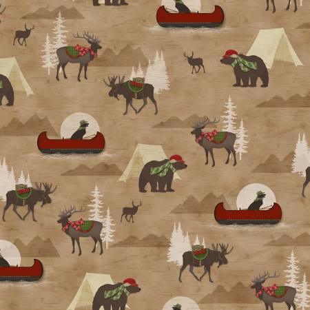 Woodland Haven Brown Canoe, Tents & Animals Allover Flannel