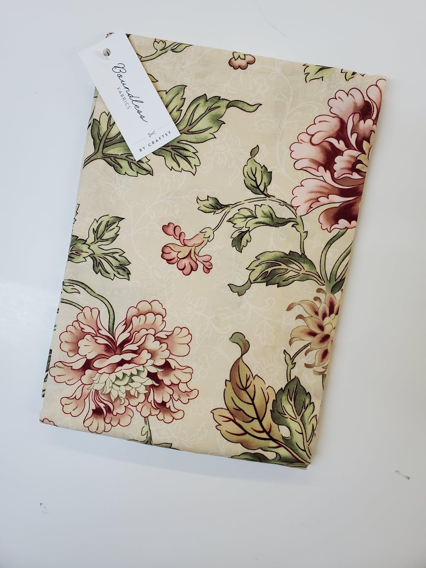 Add delicate elegance to any project with Cour de Fleur Floral Cream. This quilting fabric made of 100% cotton is from the Boundless fabric Cour de Fleur collection, featuring a large pink floral pattern on a cream background with white tracery. Perfect for crafting special projects that will last for years.