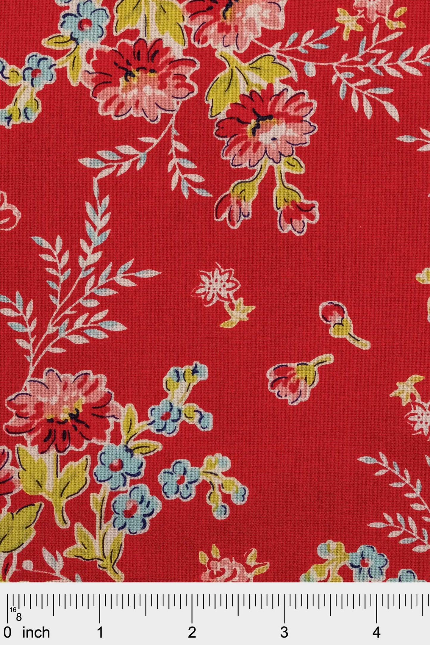 Me-oh-my! This Floral Shoppe Main Floral Red is purr-fect for the floral fanatic! Crafted with 100% cotton & quilting fabric from Boundless, it's got a medium-sized pattern of red, yellow & light blue flowers on a bright red background that'll be sure to add some furry finesse to your next project!