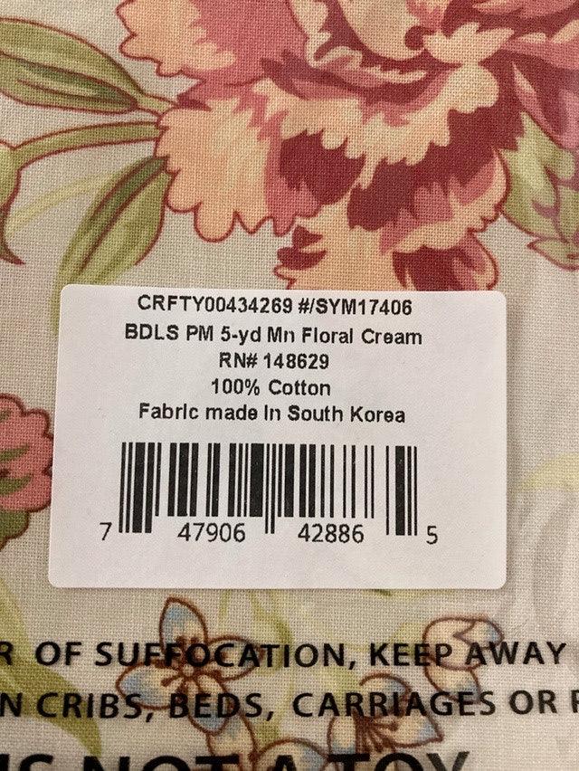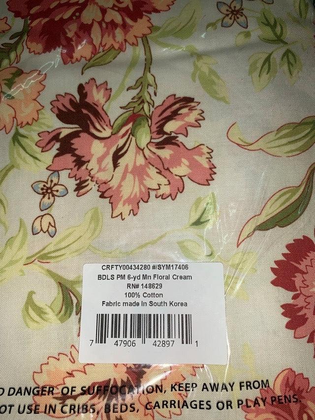 Our Posy Meadows Main Floral Cream is 100% cotton and perfect for quilting! It's a Boundless fabric, part of the Posy Meadows collection, and covered in large, colorful flowers - featuring red, orange, pink, and light blue - with a creamy backdrop. So pretty! Sew a perfect bouquet of fabrics!