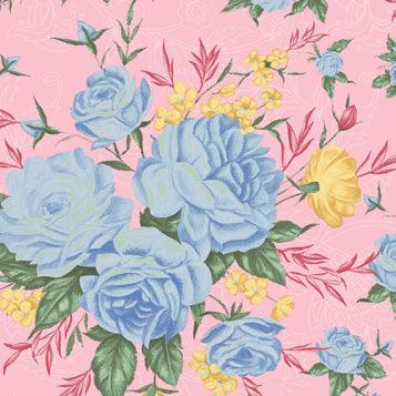 This cheerful Cottage Market Main Pink fabric is perfect for any quilting project! Boundless fabric in 100% cotton features a bright pink background with a large blue and yellow floral pattern in soft, dreamy colors. Get creative and see what delightfully cozy creations you can make!