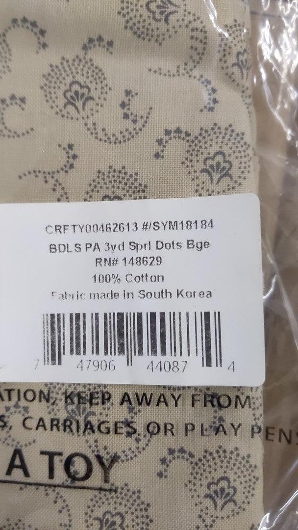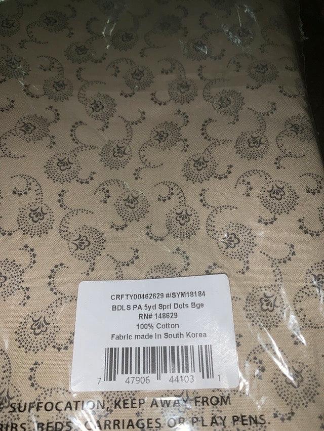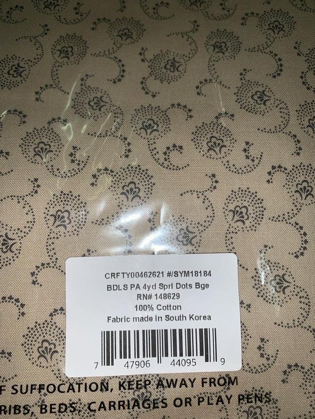 A perfect pick for your next quilting project! This Park Avenue Spiral Dots Beige fabric is bound to bring unique style to your masterpiece. Crafted with 100% cotton, this Boundless fabric features a classic spiraling seeds pattern on a timeless beige background. Get sewing!