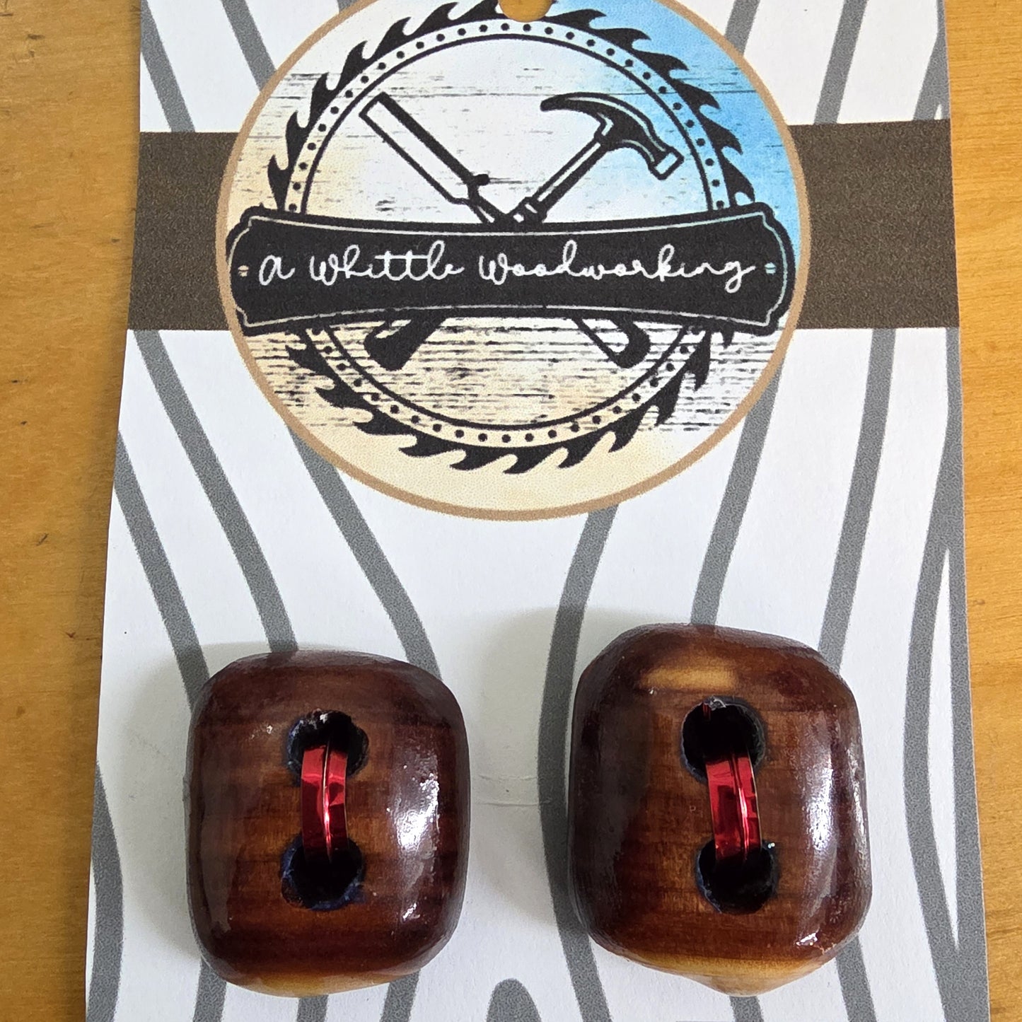 2 wood buttons, 1 inch imperfect square, 3/8 inch thick.