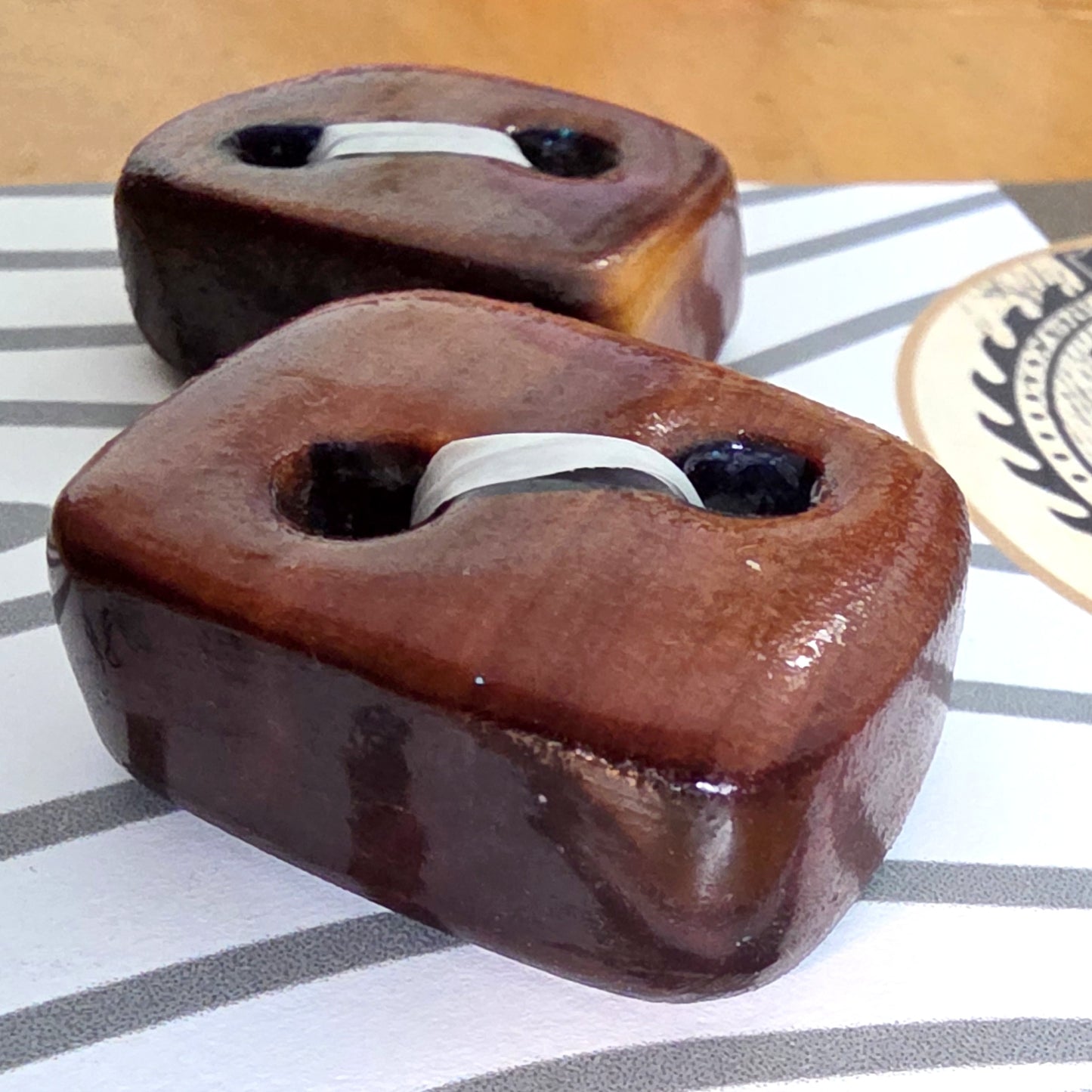 2 wood buttons, 1 inch imperfect square, 3/8 inch thick.