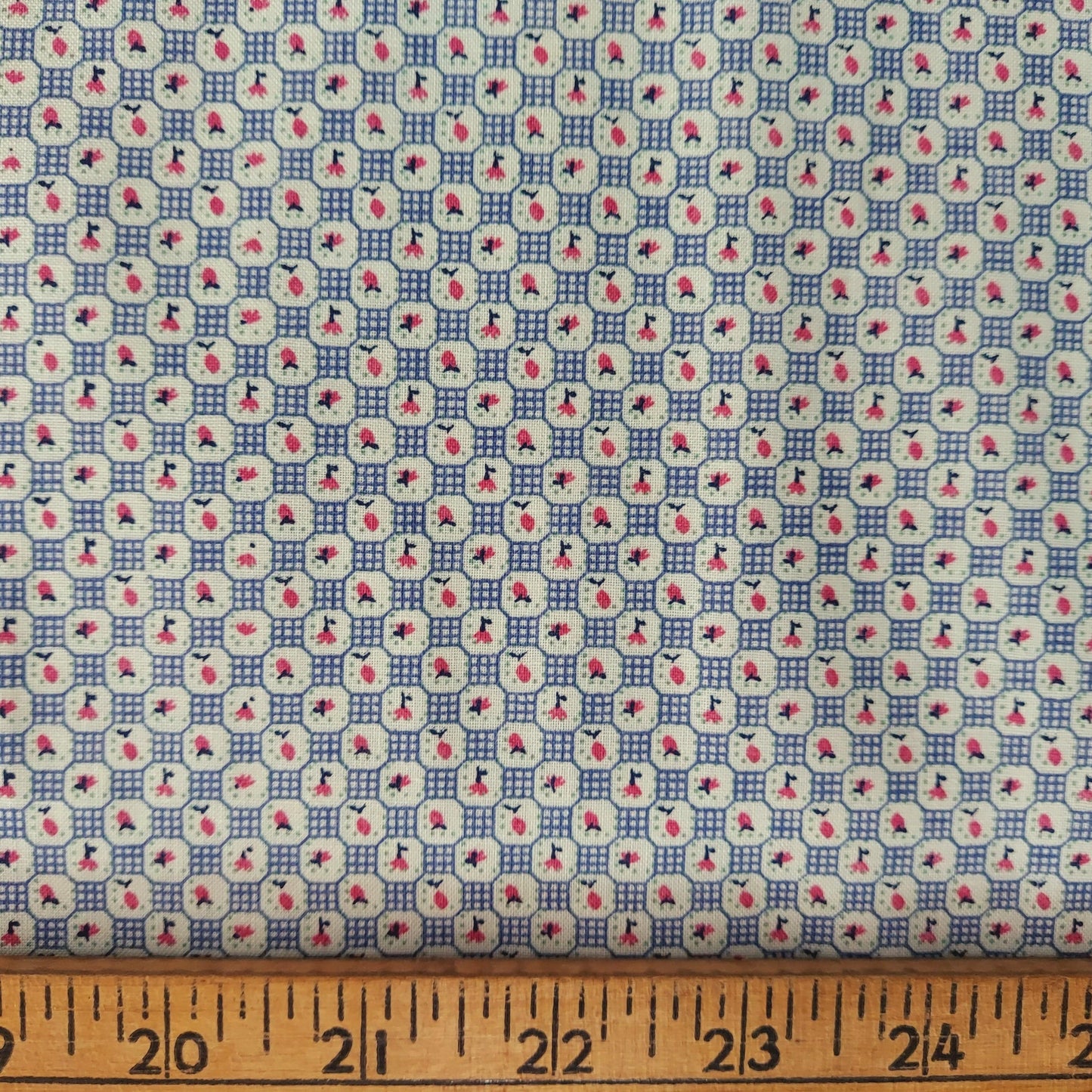 Wamsutta The Framingham Collection Tiny Flowers on Blue Grid