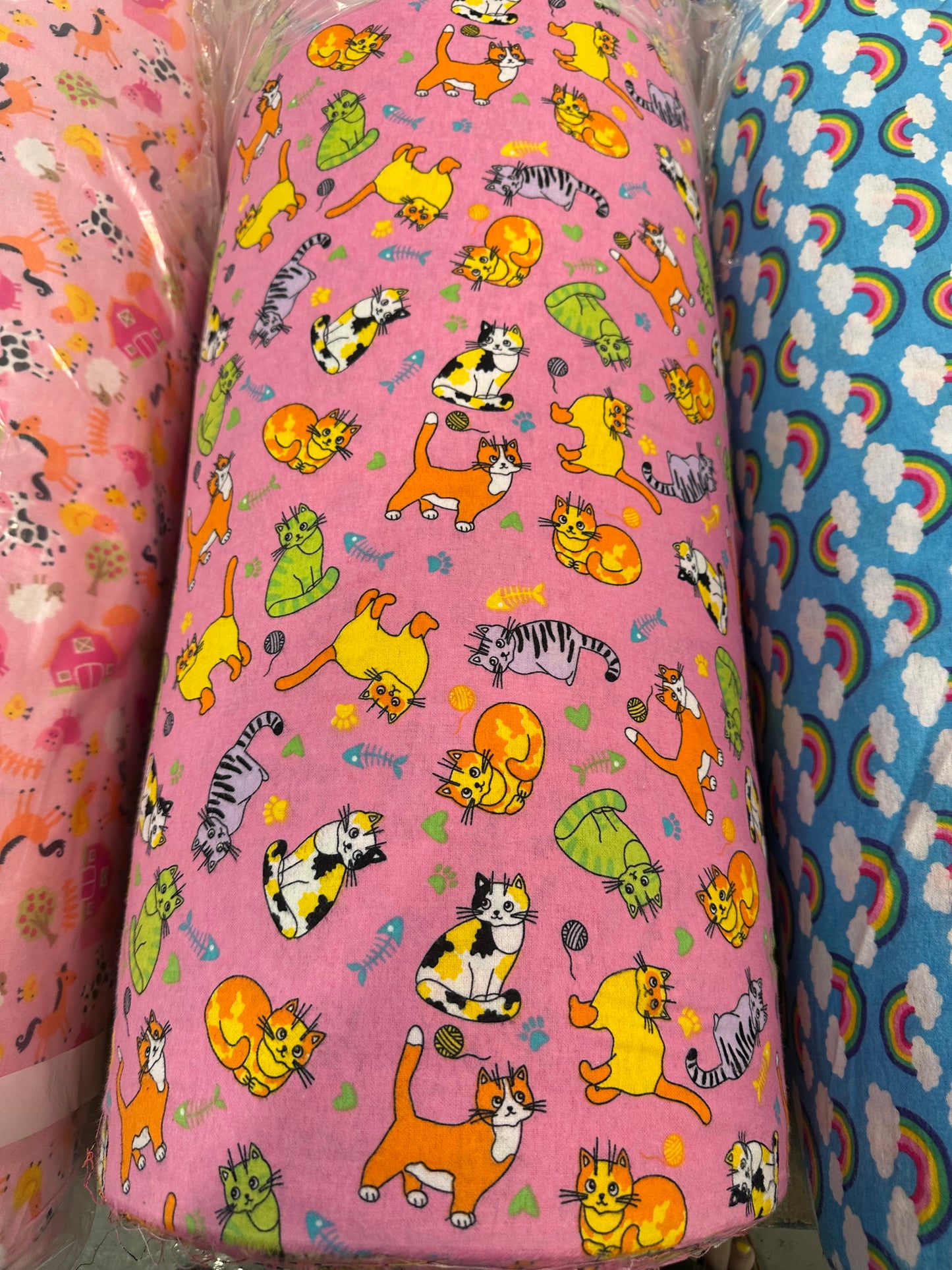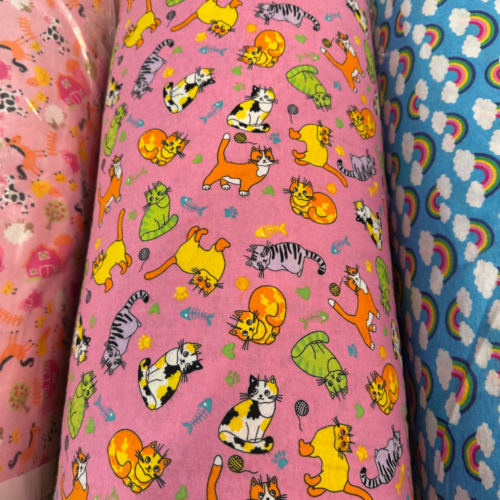 $35 Flannel Flat Fold: 5 Yards of Cats on Pink 44 inches 100% Cotton