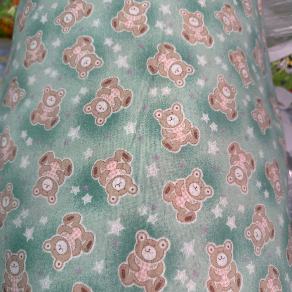 $35 Flannel Flat Fold: 5 Yards of Teddy Bears and Stars on Green 44 inch 100% Cotton