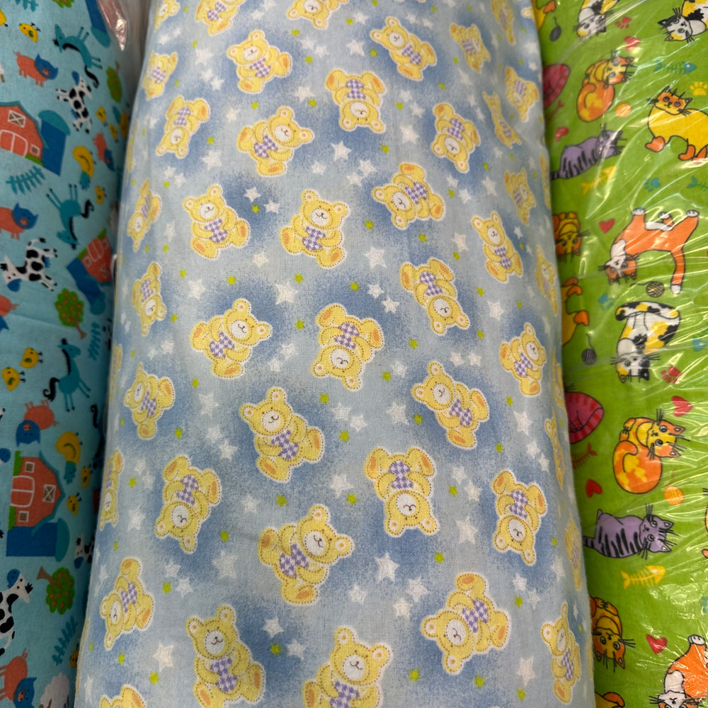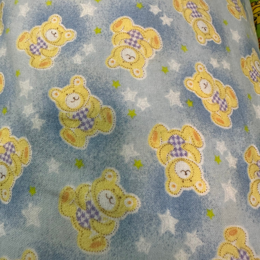 $35 Flannel Flat Fold: 5 Yards of Teddy Bears and Stars on Blue 44 inch 100% Cotton