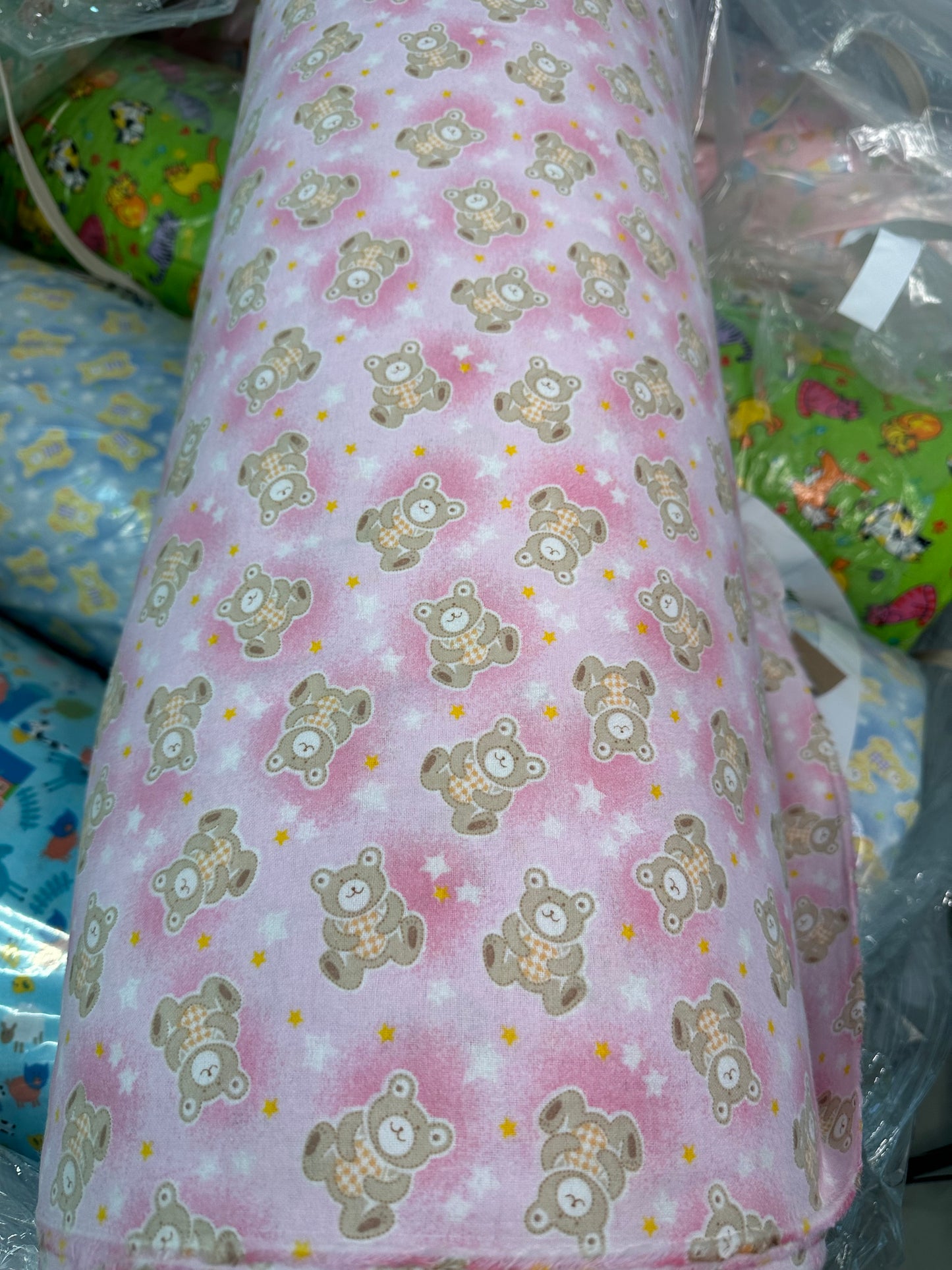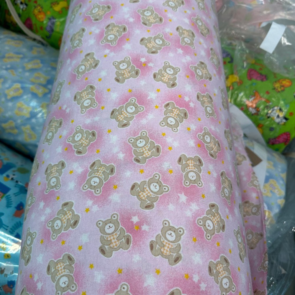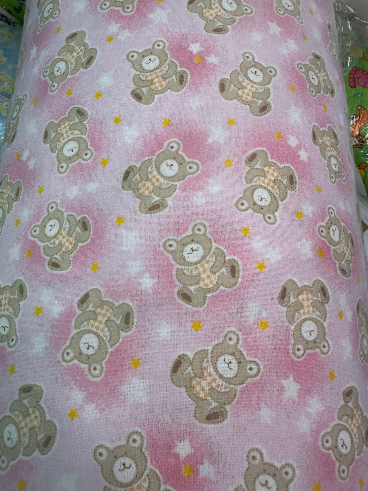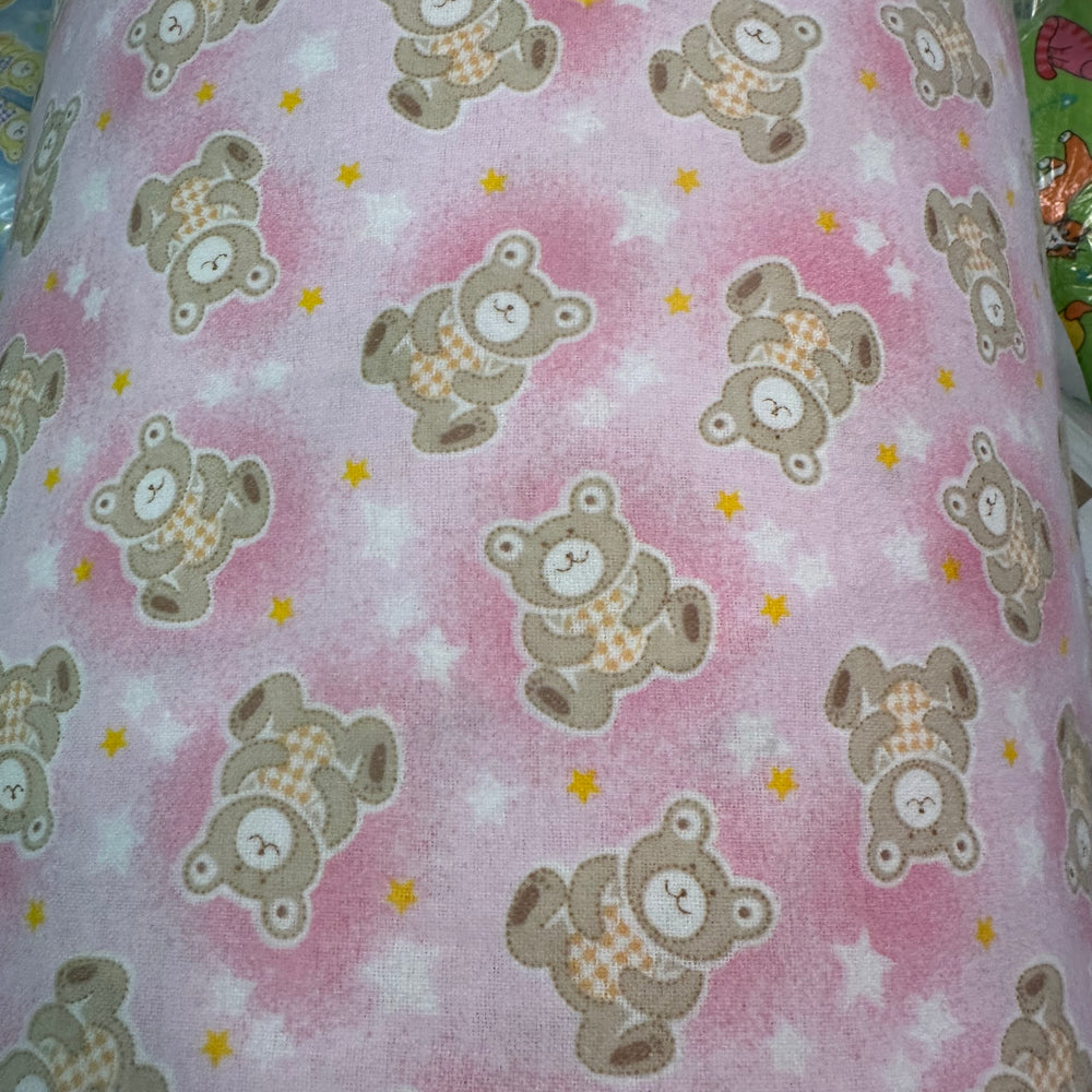 $35 Flannel Flat Fold: 5 Yards of Teddy Bears and Stars on Pink 44 inch 100% Cotton