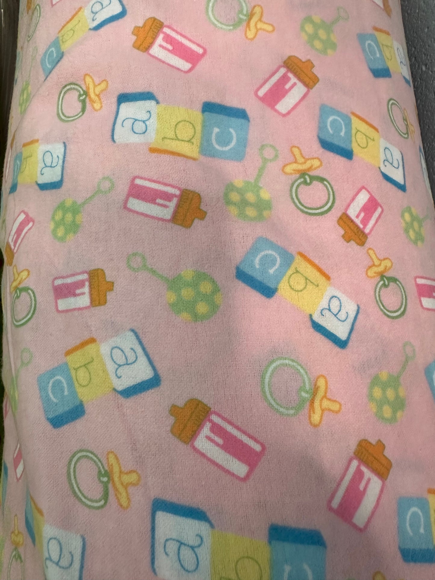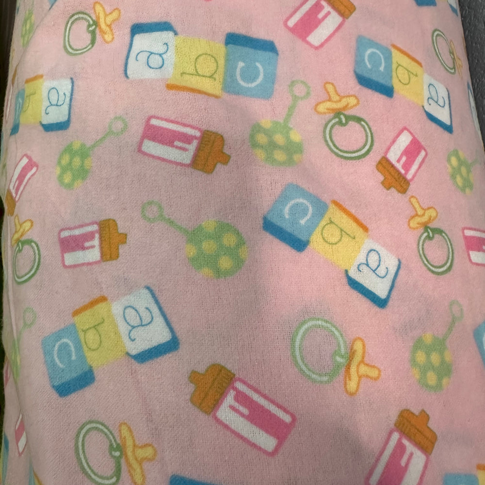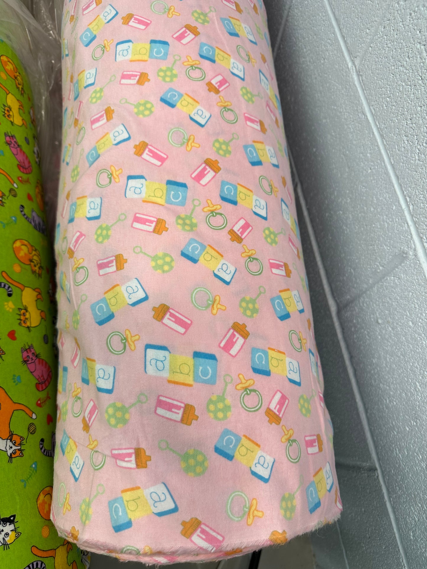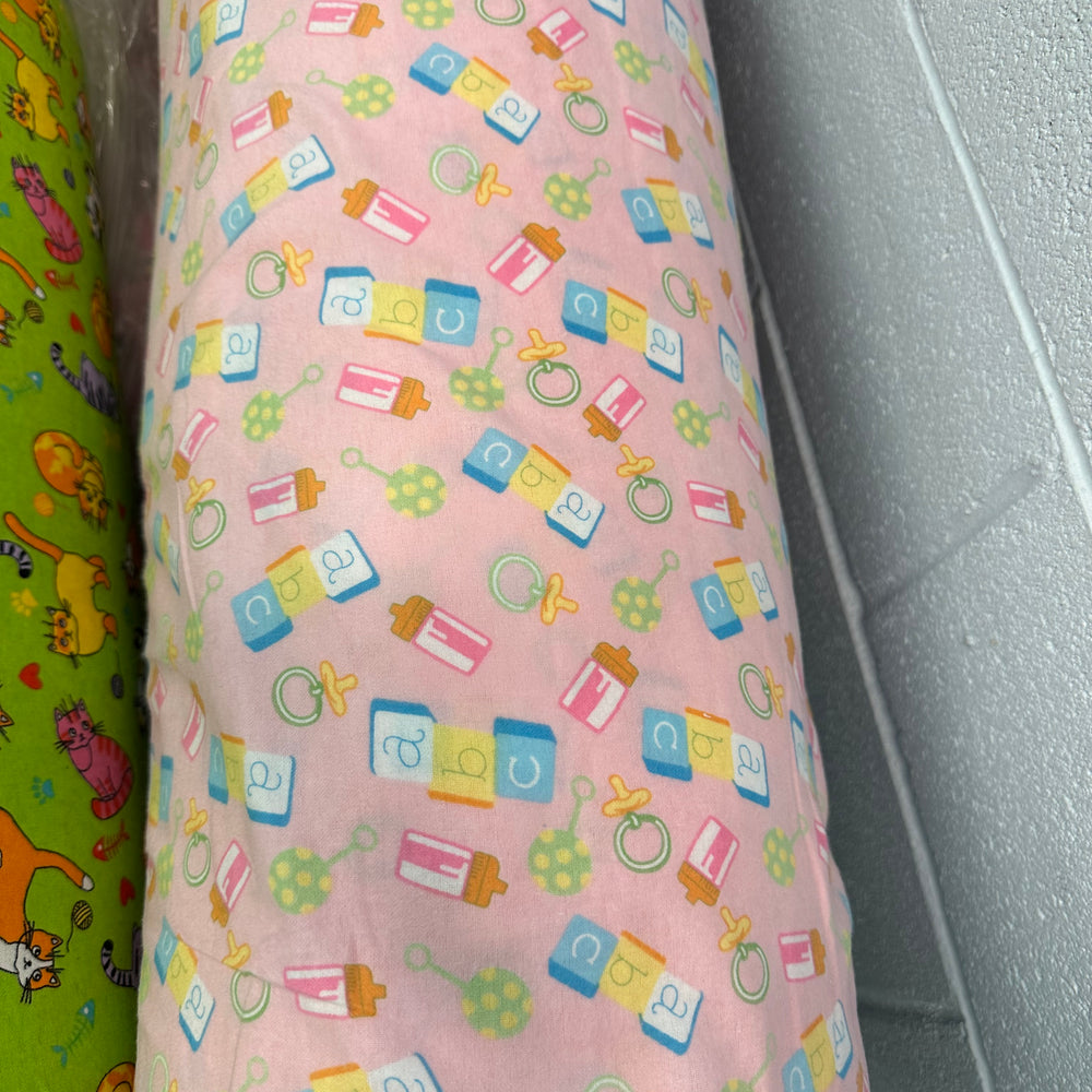 $35 Flannel Flat Fold: 5 Yards of ABC Blocks on Pink 44 inch 100% Cotton