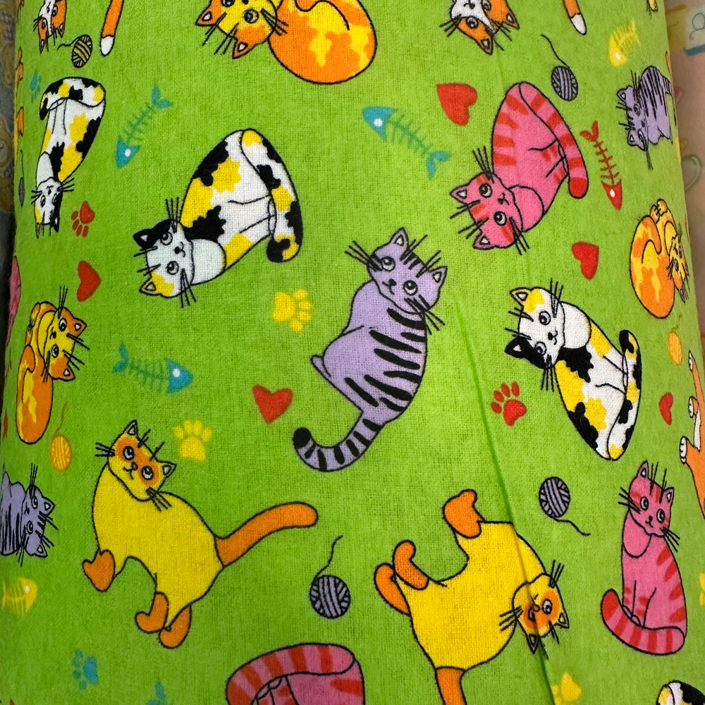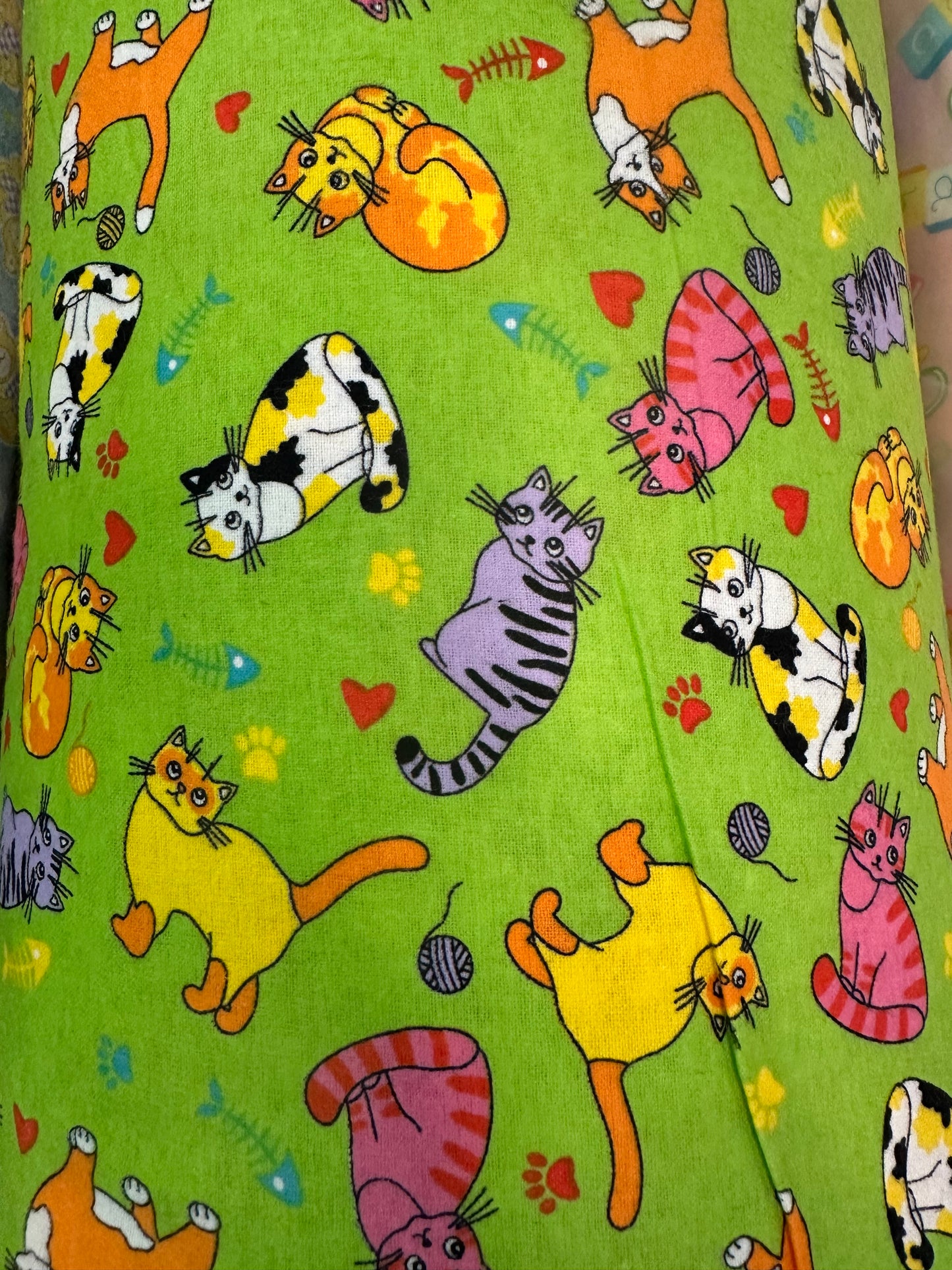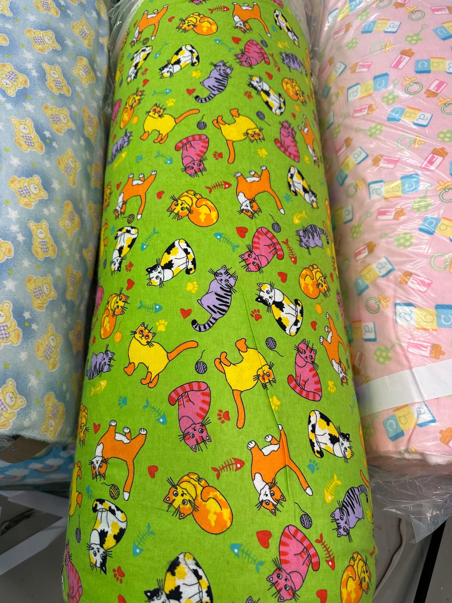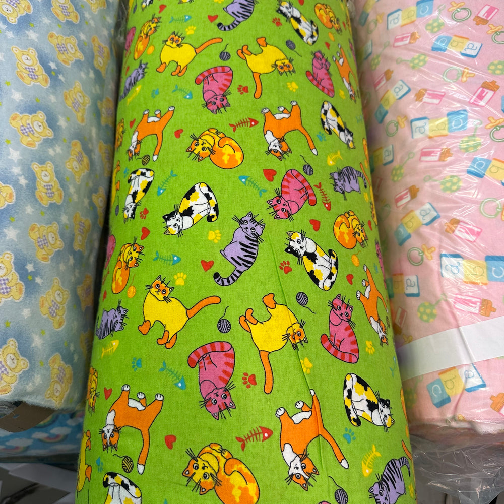 $35 Flannel Flat Fold: 5 Yards of Cats on Green 44 inch 100% Cotton