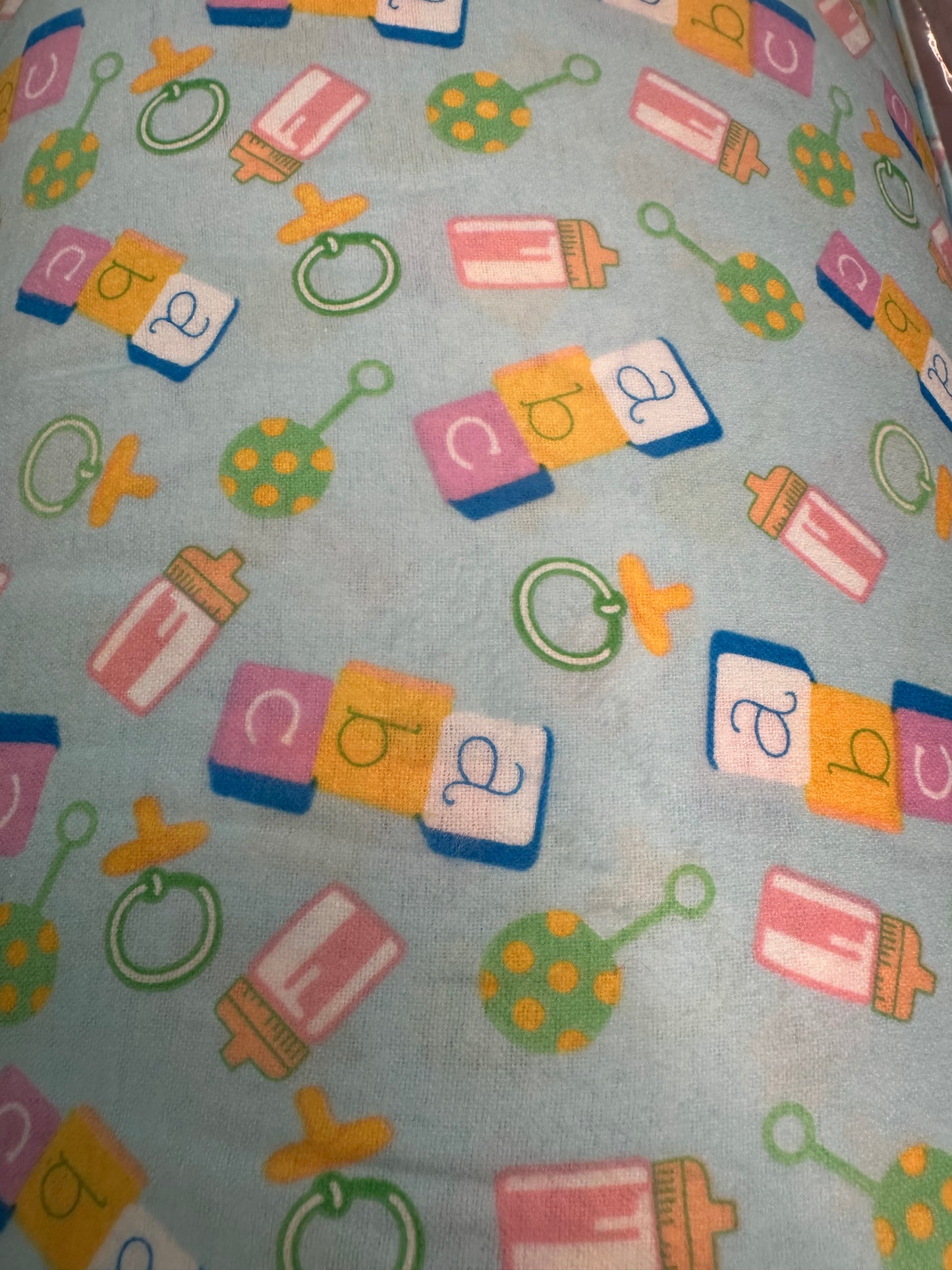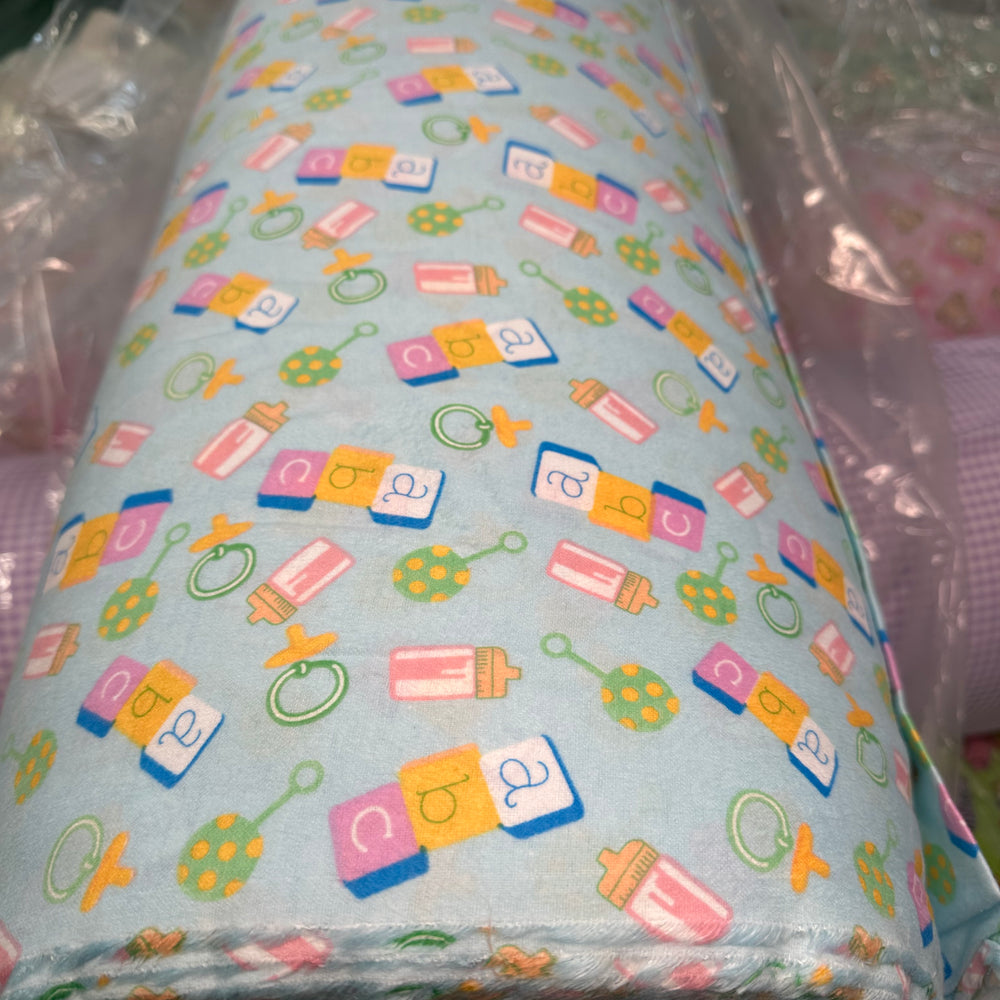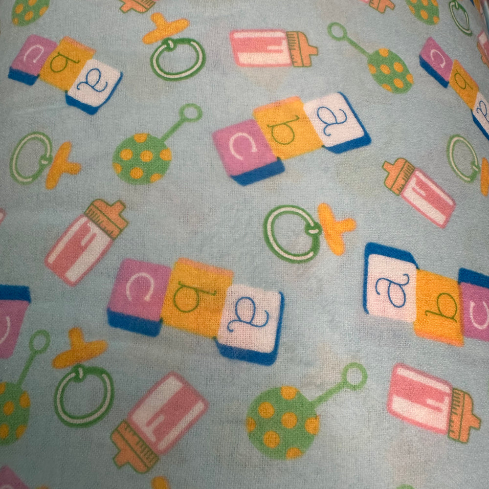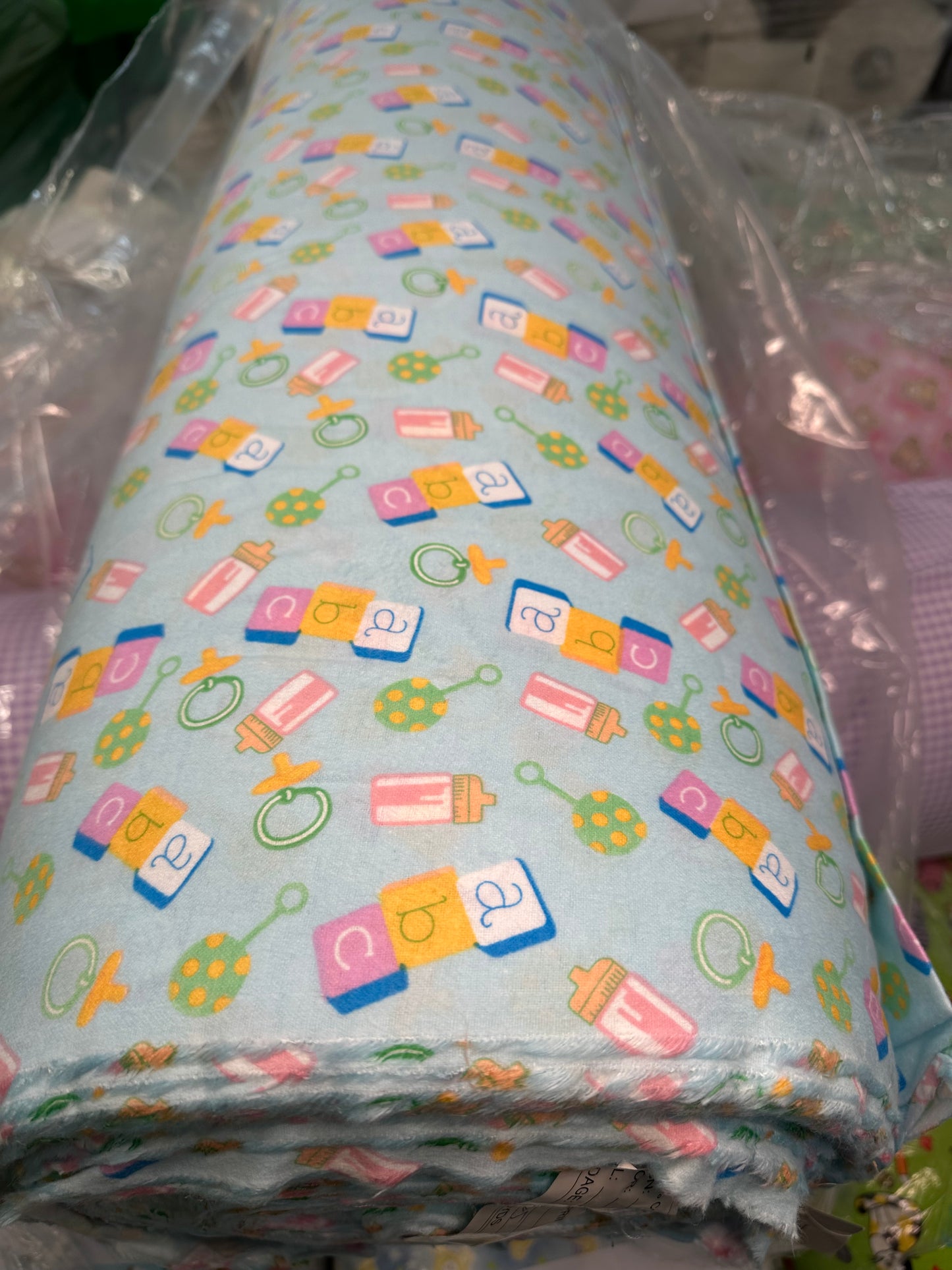 $35 Flannel Flat Fold: 5 Yards of ABC Blocks on Baby Blue 44 inch 100% Cotton