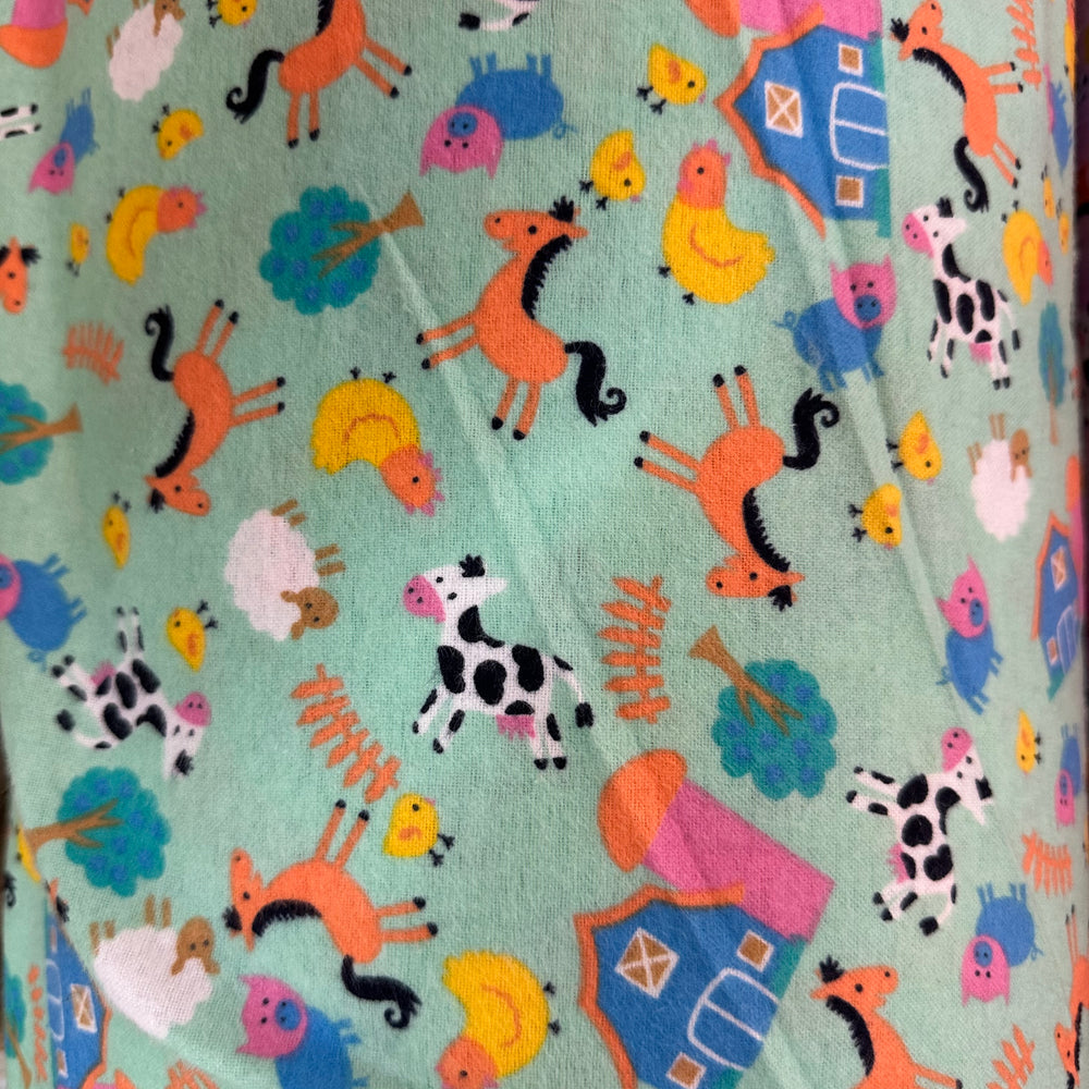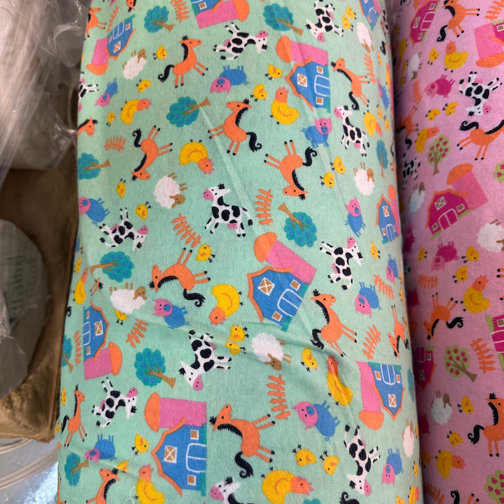 $35 Flannel Flat Fold: 5 Yards of Farm on Pale Green 44 inch 100% Cotton