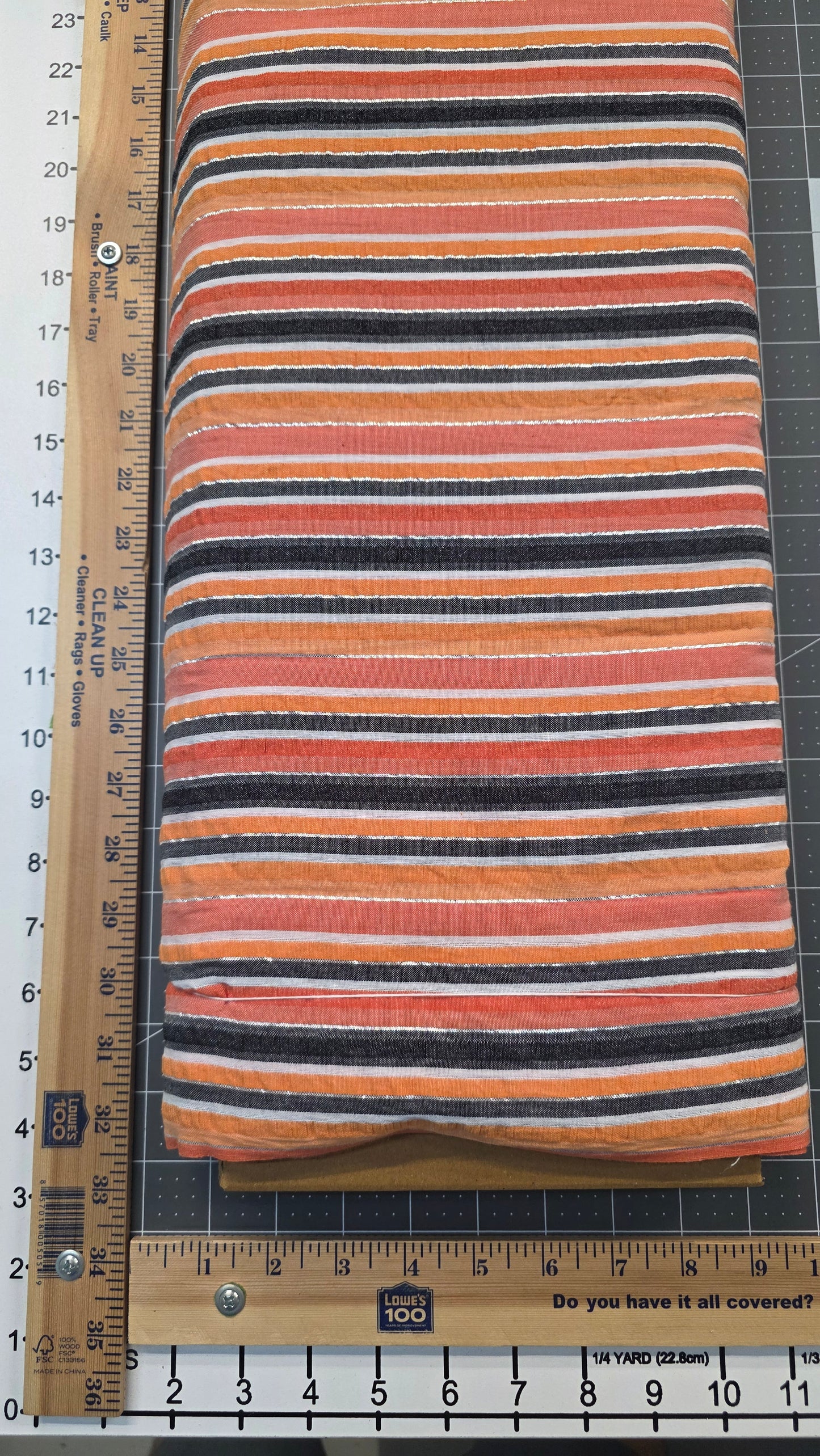 $50 Whole 8 Yard Cut - Orange and Black Striped with Metallic Seersucker - 100% Cotton - 44 inches wide