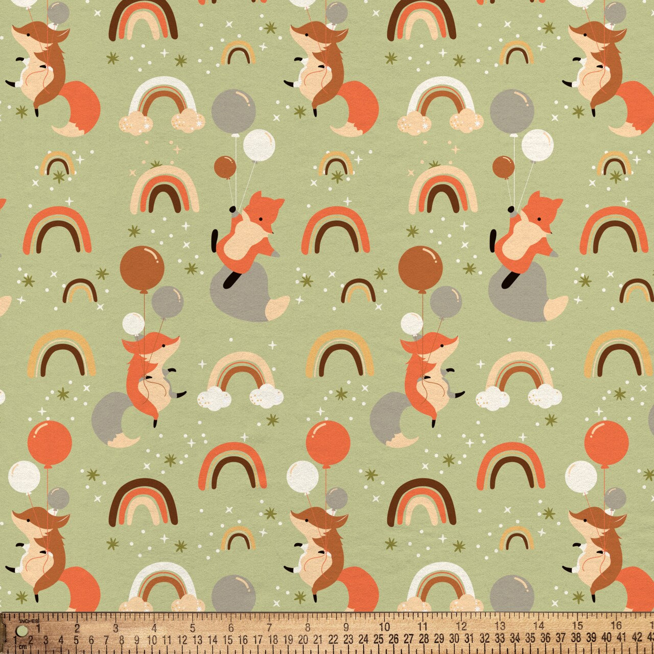 Flannel: Foxes and Rainbows on Green - 100% Cotton
